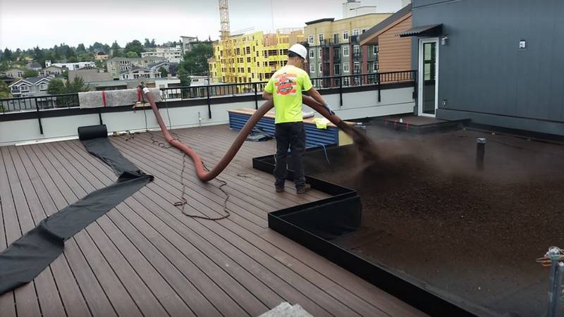 Roof Top Soil Mix can be blown into locations several stories high and spread on roof tops for gardens or planters.