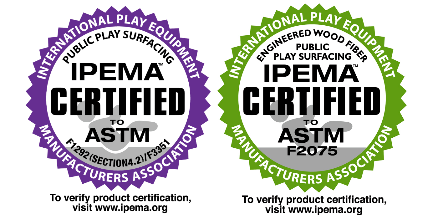 In the Interest of playground safety, the International Play Equipment Manufacturers Association (IPEMA) provides a Third Party Certification program whereby a designated independent laboratory, TÜV SÜD America Inc., (TÜV), validates a surfacing manufacturer’s certification of conformance to ASTM F1292, Standard Specification for Impact Attenuation Under and Around Playground Equipment Performance Criterion, Section 4.2; ASTM F1292, Standard Specification for Impact Attenuation Under and Around Playground Equipment Performance Criterion (in its entirety); ASTM F3351, Standard Test Method for Impact Testing In Laboratory at Specified Test Height; and for an engineered wood fiber manufacturer its certification of conformance, also to ASTM F2075, Standard Specification for Engineered Wood Fiber for Use as a Playground Safety Surface Under and Around Playground Equipment; and for a Loose Fill Rubber manufacturer its certification of conformance, also to ASTM F3012, Standard Specification for Loose Fill Rubber for Use as a Playground Safety Surface under and around Playground Equipment. A list of current validated products, their thickness and critical height may be viewed at www.ipema.org.